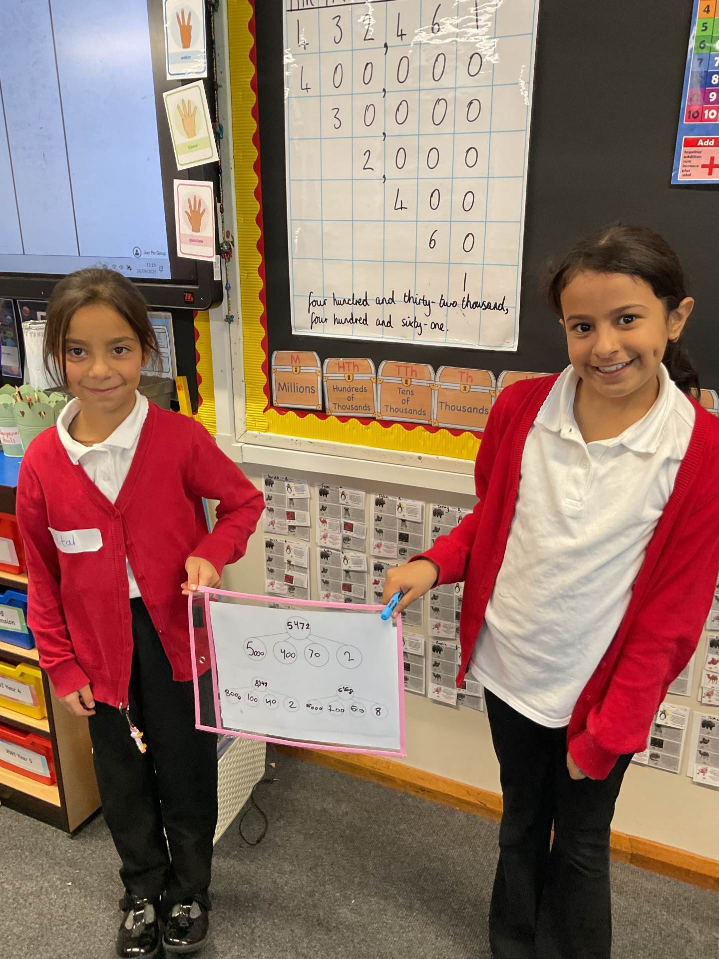 This term in maths, we have been focusing upon place value, using our super number knowledge to help us identify numbers…all the way up to millions! We can tell you that in the number 873, 245, there are 7 tens of thousands. We have also been using our place value knowledge to compare numbers. We can tell you that 895, 345 is greater than 875, 436. We have loved using our knowledge and competing as a class in Place Value UNO! Well done to Rital and Lujain for their wonderful use of part-whole models to partition numbers this term, and Oscar’s excellent use of mathematical knowledge within his explanations. We can’t wait to continue using our number knowledge and multiplication facts throughout next term!