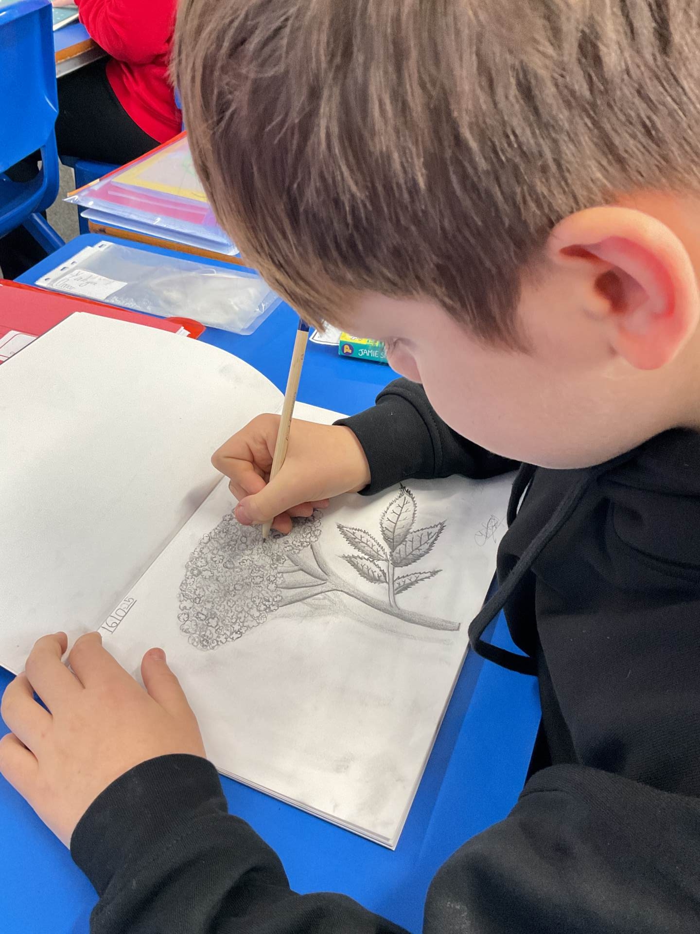 As part of our Harvest Festival celebrations, Year 6 took time to observe and sketch elderflower blossom and leaves in detail. We explored how shape and shading can bring an image to life, thinking carefully about the direction of light and how it affects what we see. Pupils added tiny details to their drawings, capturing the delicate structure of the flowers and the texture of the leaves.