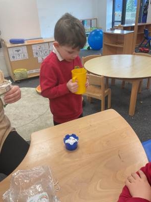 For maths, we have been learning to count using a range of number songs. Some of our favourites are “5 Little Ducks” and “5 Little Speckled Frogs”. Our more confident counters have been thinking about 1 more and 1 less this half term too.